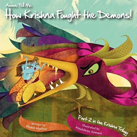 When Kansa learnt of Krishna's escape, His rage knew no bound.He summoned all his demonsAnd ordered, I want that boy found!This is the story of how one by one,Krishna bravely fought them all How Putana, Trinavarta, Vatasura and Bakasura All met their fall!"Amme Tell Me" is a charming and informative series of children's books that introduces the major Hindu festivals and figures to young readers, and are perfect for families wanting to share stories of Hinduism with their children or for educators looking for resource on the Hindu culture for their students. Written in rhyme with vivid, captivating illustrations, this series brings Hindu mythology to its readers in a fun and non-preachy way. The Series has ten books on the festivals of Holi, Diwali, and on the Hindu gods Krishna, Hanuman and Ganesha.