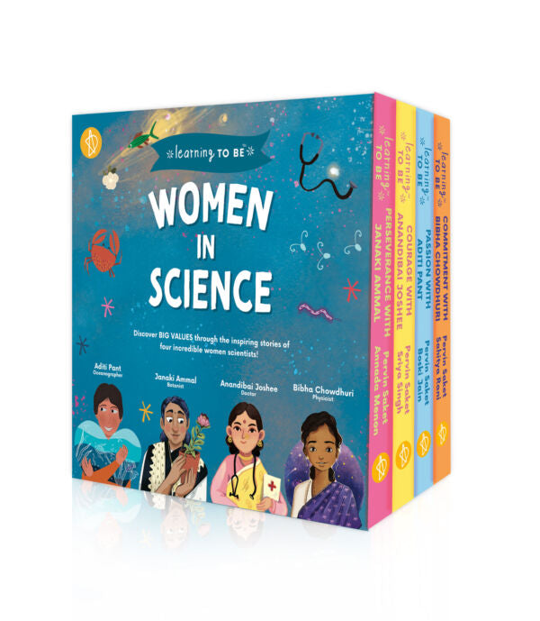 Discover BIG VALUES through the inspiring stories of four incredible women scientists. This new box set, Women in Science, from the celebrated series, Learning TO BE includes the following titles: Courage with Anandibai Joshee (doctor), Passion with Aditi Pant (oceanographer), Commitment with Bibha Choudhuri (physicist), and Perseverance with Janaki Ammal (botanist).