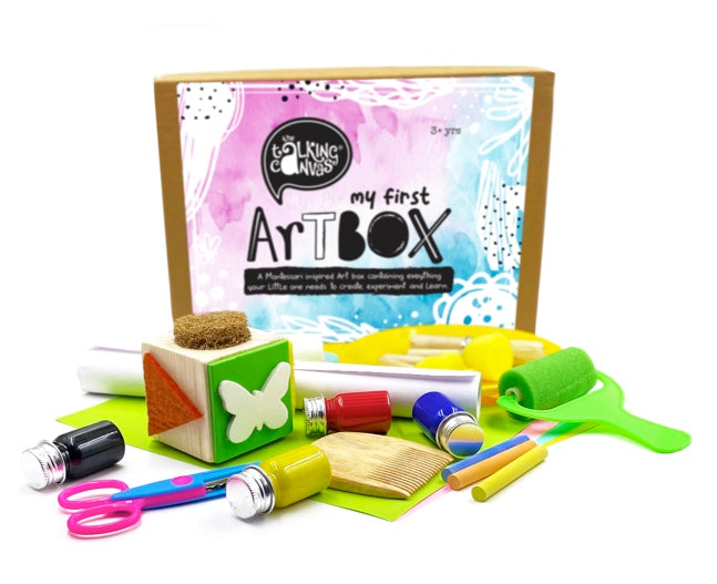 A perfect Montessori-inspired toddler art box for 3+ years is a magic trunk for fun learning and painting. My First Art and Craft Box is full of happy tools to let them naturally explore their curiosity and experiment with colours, textures and art tools.