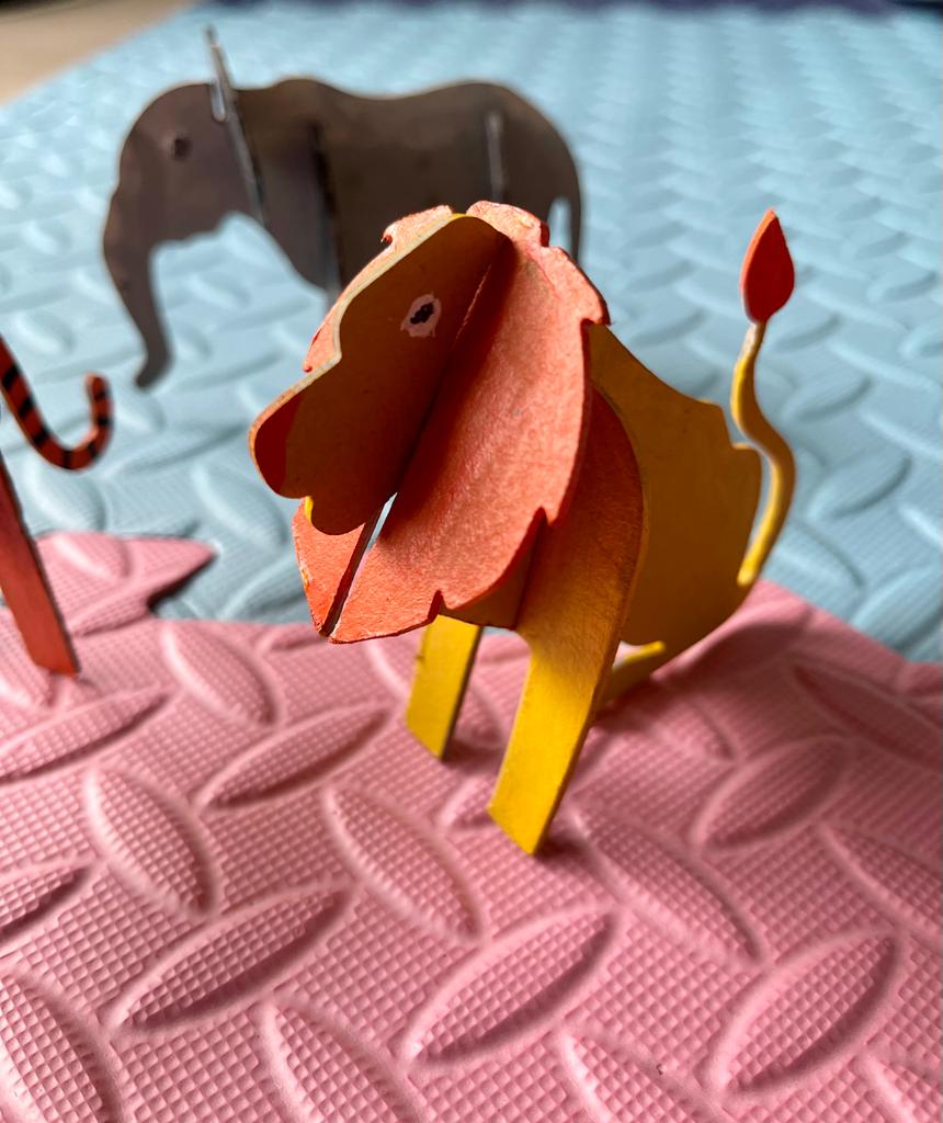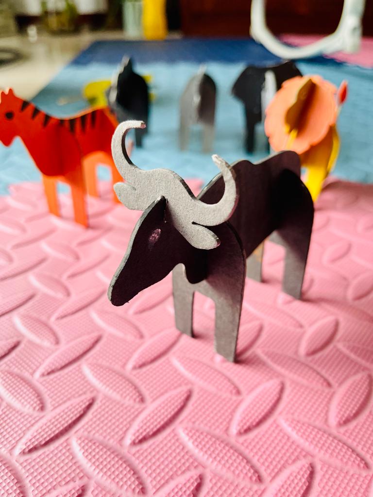 Paint, assemble and learn about Wild Animals of India while getting creative and letting your imagination soar. The story book given with the kit helps kids create their own stories with these beautiful animals. This Kit Includes: - 4 pre-cut wooden animals - 6 tubs of fabric paints - 1 Paintbrush - 1 Palette - 1 Story Book - Instructions
